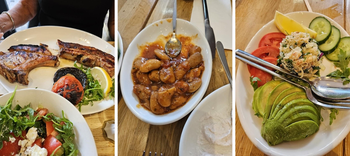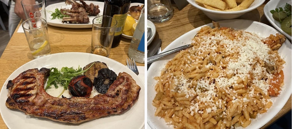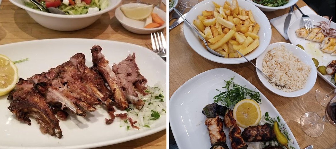 Absolutely the best greek food period Superb seabass on the bone wife had a rump which was cooked to perfection tasty and juicy excellent, and the best Tara and chips period... Only negative is as others have said waiting staff are a bit too quick to clear plates, this is not the Greek guys who wait tables but the younger ladies..